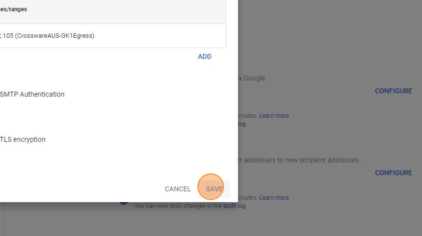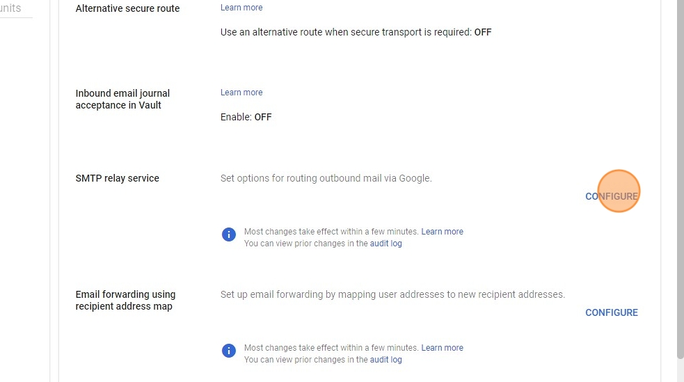 13. In the SMTP relay service section, Click CONFIGURE