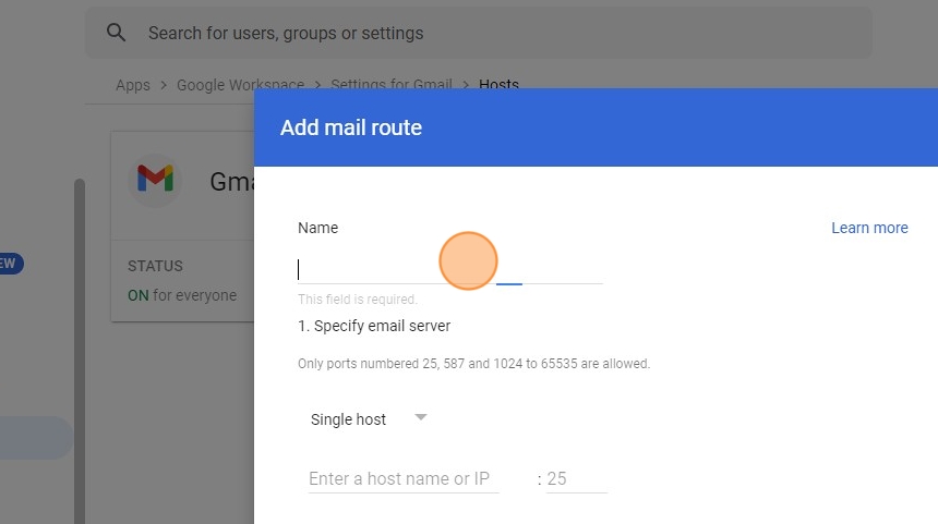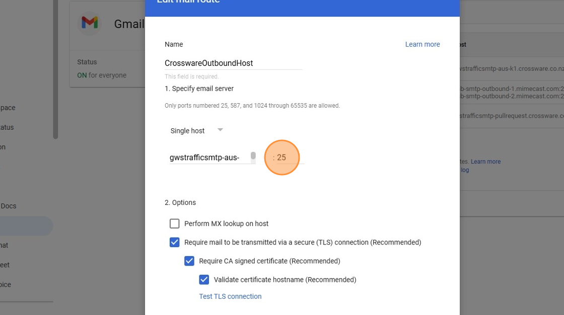 7. Click the host name text field > Enter the smart host relevant to your region: