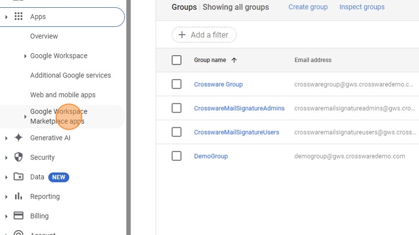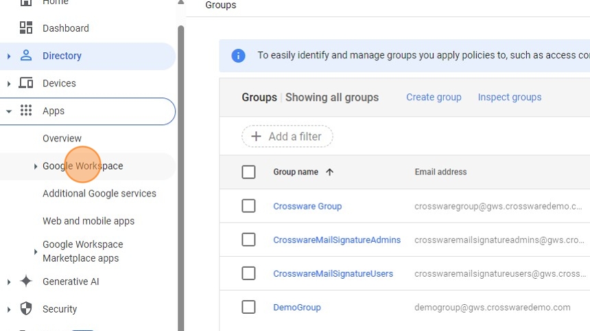 2. Click the Google Workspace drop-down option