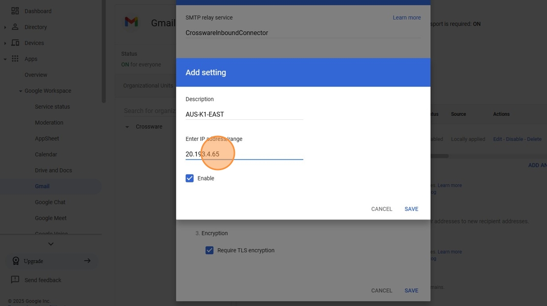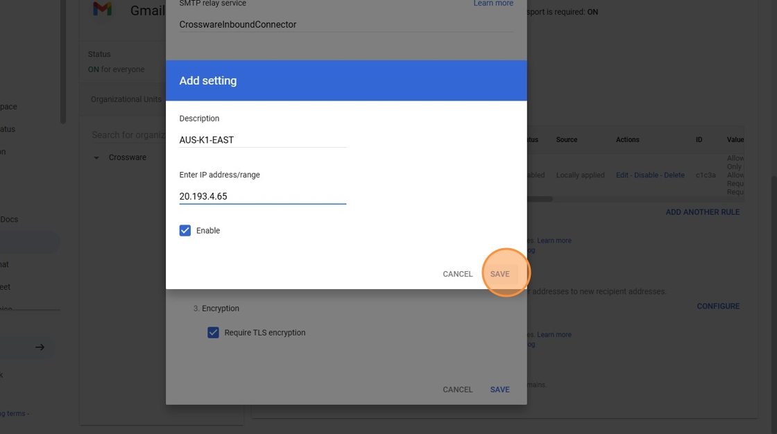 16. Click this text field > Enter the following IP address(s) relevant to your region - Note you will need to add both IPs from your region: