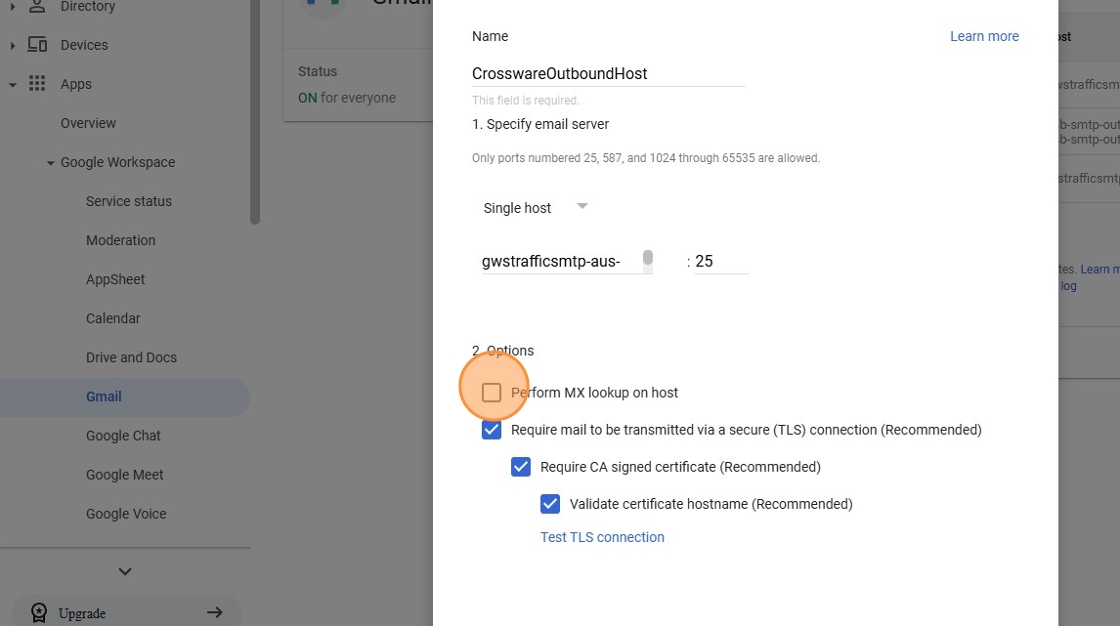 9. Select Perform MX look-up on host